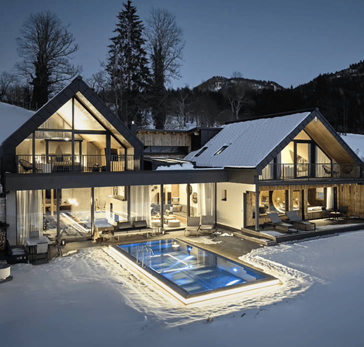Vom schillernden Geschöpf des Eisvogels inspiriert vereint dieses Haus dessen Lebenselemente zu einem wahren Luxusdomizil: Harmonisch schmiegt es sich in die Landschaft, macht den Blick frei in üppiges Grün & kühles Nass. Und mit seinen gediegenen, naturbelassenen Holz- sowie Lehmwänden zaubert es ein warmes, gemütliches Wohlfühlambiente.